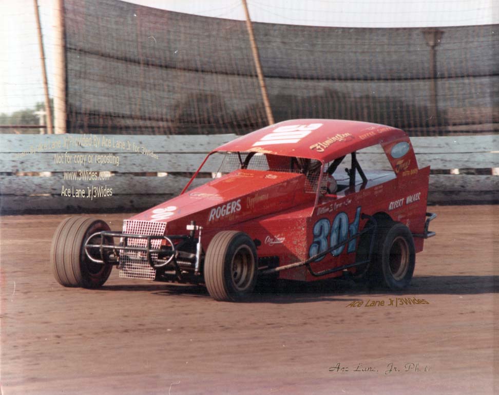 | Comments: | Comment: Craig McCaughey in his self built #301. We're told that the roof came from Lincoln Continental our of a junkyard. We may not of known it at the time, but it was just about the end of the era where drivers would build their own cars, that still had somewhat of a unique look. Looks like Craig was incorporating a lot of different ideas with regards to sheet metal on this cool creation. |