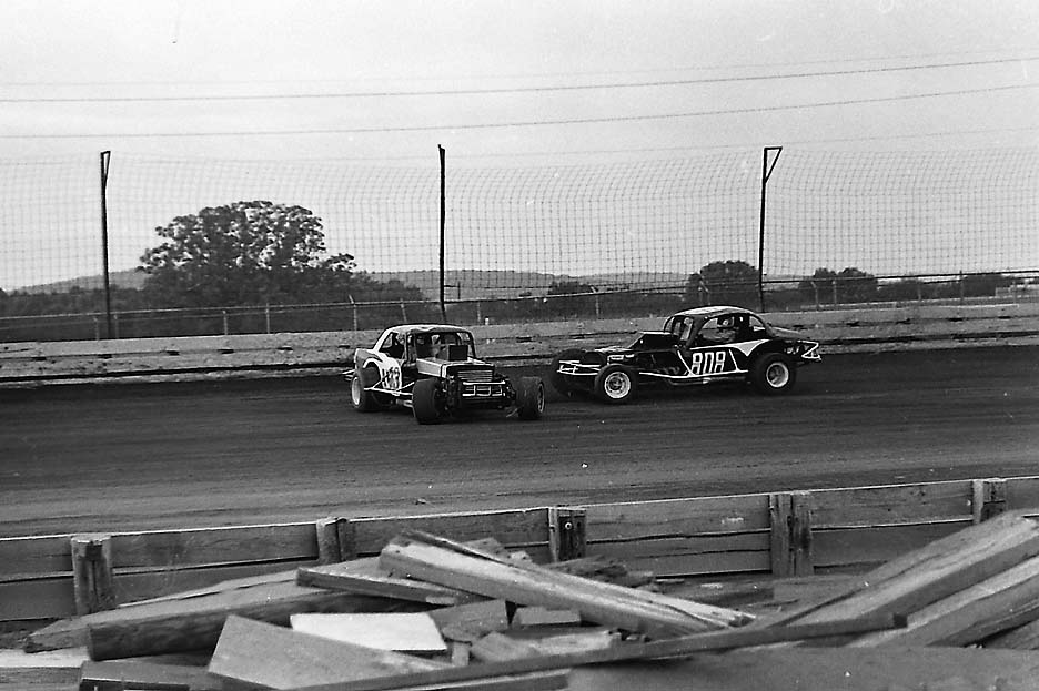 | Comments: | Comment: "Whoa Wilbur....." Looks like Sammy lost the handle between turns 3 & 4 on the Jim Horton Sr owned Mustang, with WIlbur Force looking for a little daylight between Sam and the wooden fence. |