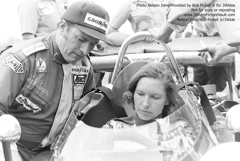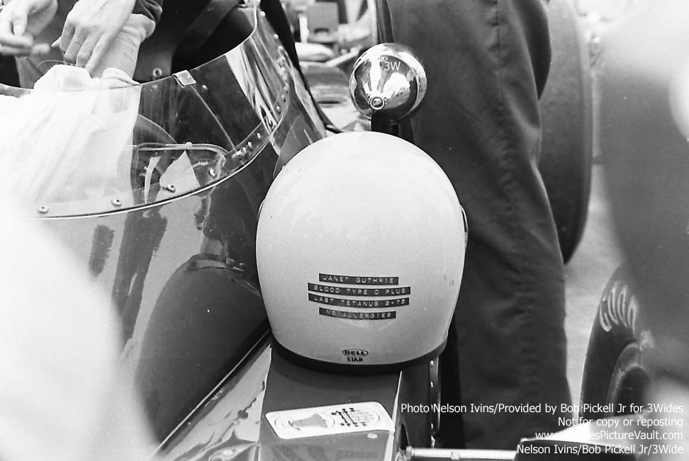 practice session at Trenton Speedway, Trenton NJ. In photos #4, #5 & #6 (from the top), that's Indy car racer Dick Simon providing some words to Janet before she heads out for a few laps. Notice as Janet first heads out to the track, the car is equipped with a camera mounted on the front of the car to capture some of the first few laps on the speedway. At some point, the camera was removed and Janet, headed back out onto the 1.5 mile speedway for some laps at speed. The last few photos above look to have been taken at a press meeting, with drivers Dick Simon (left), Janet, Johnny Rutherford and Tom Sneva. For more information on Janet Guthrie and her career in Motorsports be sure to check out http://www.janetguthrie.com/index.htm We thank Nelson Ivins and Bobby Pickell Jr. for providing these images to be shared here in The Vault. |
