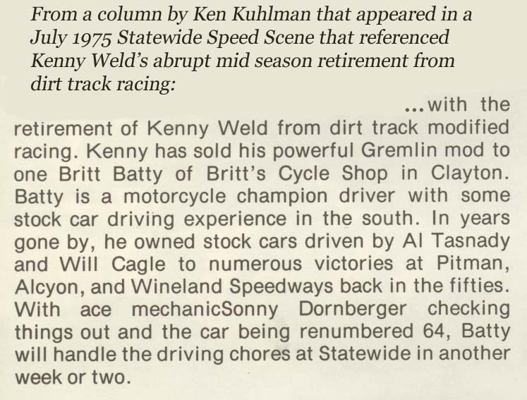 ![]() Kenny Weld #91 1975 (after no longer sponsored by Weikert) |