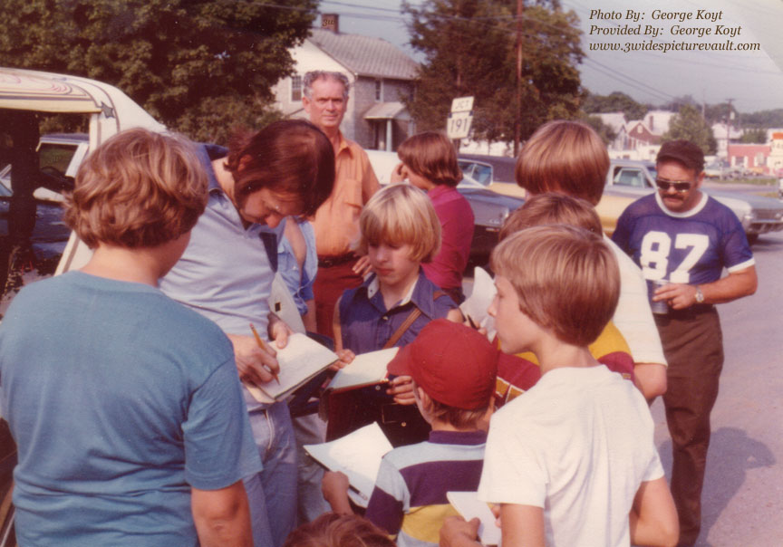 Photographer: George Koyt, Provided By: George KoytAnswer: Gary Balough, Nazareth, Pa, and the car # is M1. (Check out the Rt 191 Sign in the background and the stars and pinstriping on the roof of the car.)
