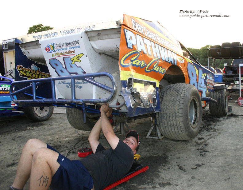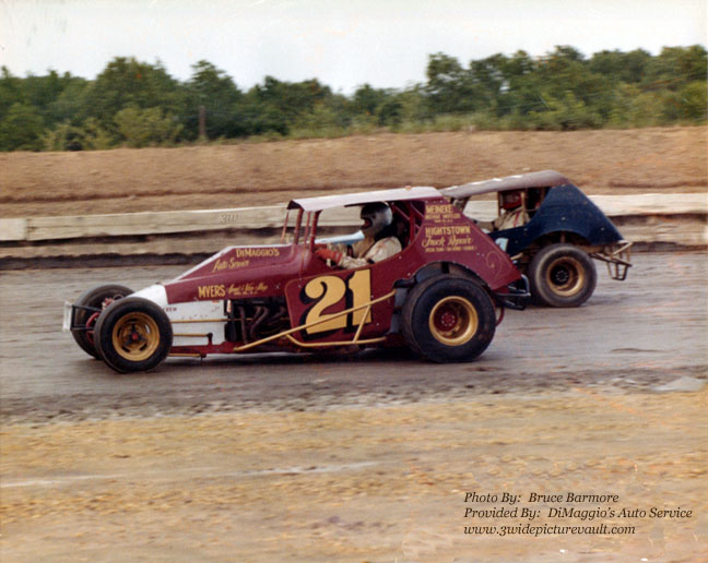 Answer: Mike Lyons! Mike's cars often had the #21 on them throughout the early years and most recently, Mike ran the #1M at New Egypt Speedway until retiring last year. Those of you who live near Mercerville, NJ might recognize "DiMaggio's Auto Repair on the hold. The shop is now located off of Youngs Rd behind Acres Auto, and is one of the best independent shops in Mercer County and is owned and operated by Jamie DiMaggio.