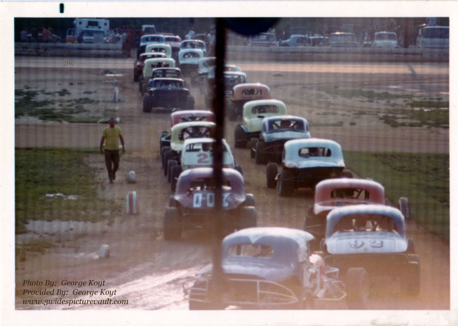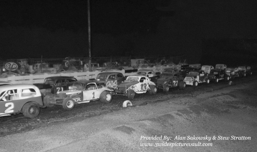 Others that have been suggested by Bill Ganley are Jim Lawrence (red white and blue #23 car at the rear, George Amerman orange #39 coupe, Vic Gilbert #147 red coupe with white roof and truck, Fred Dmuchowski yellow coupe, Walt Emery #3 blue coupe with white and red on roof and possibly Les Katona, and possibly Gary Boekout.