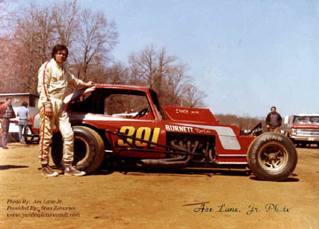 It's the boy who, for his 18th birthday, I bought his first sportsman car for him and took all the good parts from my car and put into his. So, we planned on racing his car at EWS, but, as to be expected, it rained out opening night. So, we called Bridgeport to see if he could run with the sportsman. When we got there, I asked my good friends Roger Laureno and Scott Pursell to walk John around the race track. I told John that in the first heat to ride around the back of the pack and find yourself on the race track. He did well, but finished last.