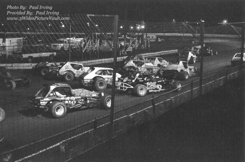We asked you guys to come up with 10 drivers/cars in the Paul Irving photo above. Here's what you came up with (from front to back: Bob Turlip #8?, Gerald Chamberlain #76, Stan Ploski #27, Dom Buffalino #2B, Rich Varone #7?, Tommy McConnell #54?, Paul Rochelle #16, Fritz Epright #49, Larry Bowers #1B, Ken Brenn Jr #24, Kenny Brightbill #19, Roger Laureno #125, Craig McCaughey #301 and Tom Hager #43.