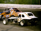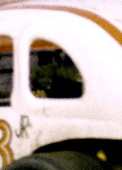 Here's a few clues: We erased the # from the car above to make it more difficult because this car had a very "recognizable #"... The car also usually had a very "recognizable paint scheme", although in the photos above, it looks like it was still in light gray primer... which is very strange since this was usually one of the nicest looking modifieds in the pits! (The number that was on the car that we erased was only on there with black tape which indicates to us that this was either very early in the year, or the car had just come back from a serious accident the week before.)Answer: Fritz Epright in the Norcia #81.