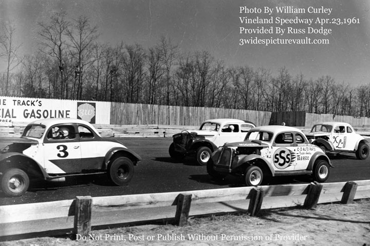 We asked: Name the drivers in the three coupes and coach pictured in this April 23, 1961 Vineland Speedway photo. (Question and photo provided by Russ Dodge.)