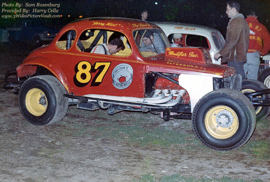| Comments: | Comment from Harry: Attached is the last 87 built which was a 427 fuel-injected car from the 3-Bs (Bob, Bud, and Bill). Jerry Karl is shown in the car. This photo is from my collection originally taken by the late Sam Rosenberg. Over the years, many fine drivers chauffeured their cars. The ones I can remember besides Ray Cook was Doggie Huett, Jackie McLaughlin drove it at the Trenton Speedway, Bud Olsen in a 100 lapper,Rags Carter in a 100 lapper, Vince Pantuso, the late Doc Norton drove it once at OC,Bobby Bottcher took his turn behind the wheel once to help them out with a handling problem, Russ Hoeck or Houck drove it at East Windsor, and Jerry Karl as pictured above at "Victory Speedway". |