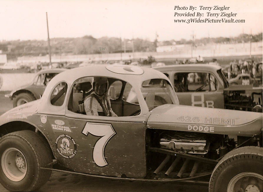 | Comments: | Comment from Terry: This picture is one I took of Leon's Hemi at the Nazareth 1/2 mile track. I believe it was in 1968. Notice the driver is Bobby Bottcher. I believe Leon was in his sedan on that day. |