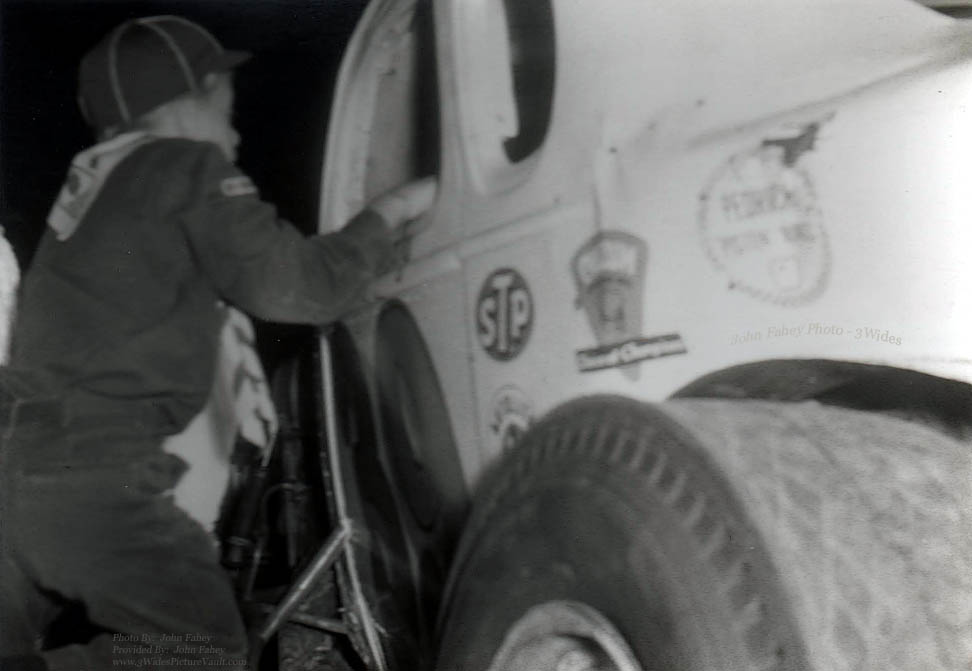 I'm not the kid in this particular photo, but he's doing what I couldn't get enough of during the same era. Every one of those coupe and coach Modifieds was unique and I would scrutinize them inside and out, every chance I got. This photo, and the comment from photographer John Fahey, really hits home with me...... |
