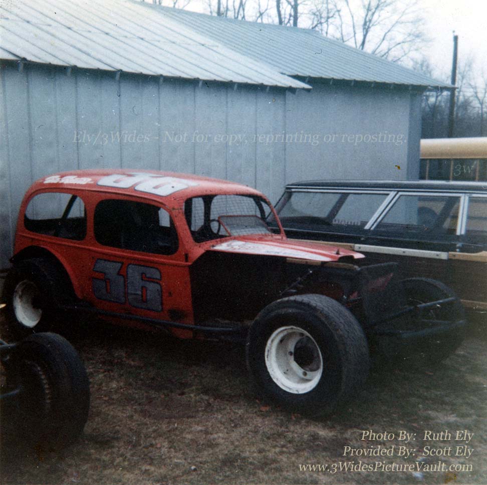 I used to ride my mini bike across that same grassy hill as a kid watching my dad and uncle load up an S-1 pinto every Saturday night for wall. Oddly enough, the very last modified chassis that bob rossell fabricated is still inside the barn door to right (nearest the school bus). A lot of history took place in those two garages; names like Gil Hearne, Bob Rossell, Herbie Tillman, Dick Lewis, Pete Britain, Pee-Wee Griffin, Frank Myronchuk, and Jackie Moschera at one time or another we're parked in front of that barn across three decades. |
