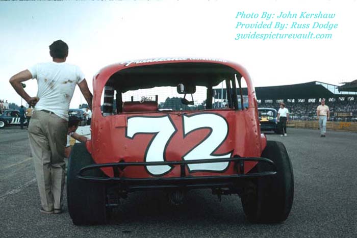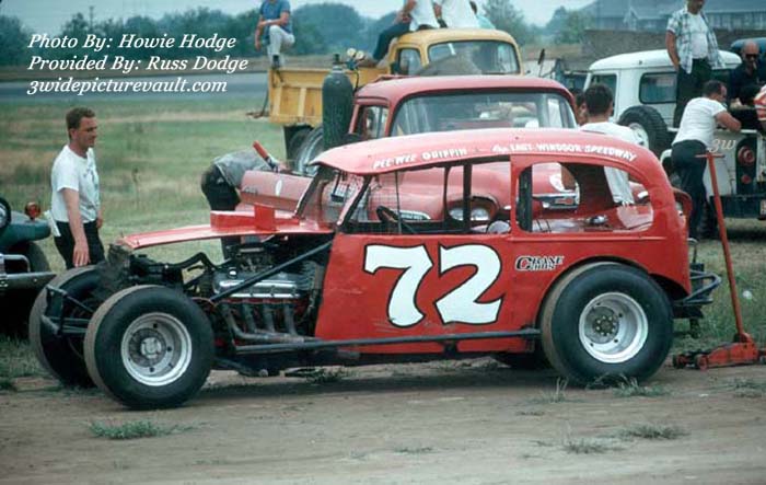| Comments: | Comment from Russ: I have sent in two photos of PeeWee Griffin's sedan, taken by John Kershaw and Howie Hodge. They are both prized by me, but I like the photo of the rear of the car, the best. Taken at Trenton Speedway in 1968, The lettering on the roof say he was representing East Windsor at Trenton. Howie Hodge was jsut recognized by EMPA for his outstanding photography. I had a chance to meet him and his wife, who also is an excellent racing photographer, at Motorsports and tell him how much I appreciated their work. Just super nice good people! I wish I had more of his photos! Thanks, Russ Dodge |