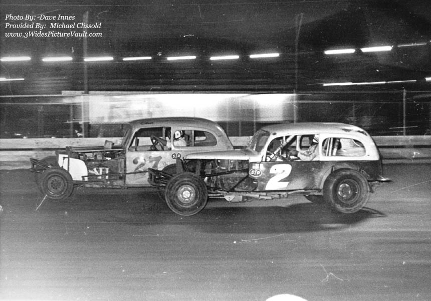 | 12/14/08 | Mike Clissold | I remember this like it was yesterday. It was the all star stock car league......note Stan's all star league team helmet. I think 1969 and Flemington for sure. Looks like the concession between 1 and 2 in the background.. Notable because the two of them ran practicaly side by side for about 50 of the 100 laps. Not positive but I think Frankie won. Maybe Stan or Frank remember the race. |