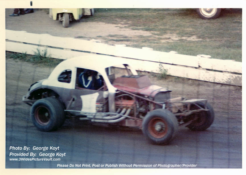 More than meets the eye... Lots more! Plenty of "GO"... but never "Best of Show"... Not sure if this is Lee or Larry Taylor behind the wheel of the powerful Wally Marks' #1 coupe at Flemington Speedway. |
