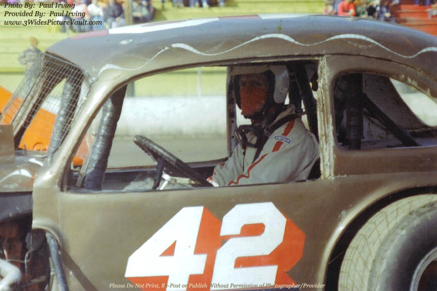 | 01.07.11 | Greg Chelak | Chet in his "Speed Sport" Racing uniform prior to OCFS Warm Ups in his brown #42. Notice the "Hand Brake" often used by many of the competitors in the early seventies, to his left just in front of the Steering Wheel. Although Chet wasn't a front runner it never altered his love of the sport and weekly attempts at Victory. During his "Hey-Day" 30 car consi [s] were a normal event at Middletown, a story well told by the late Eric Koster, we will explore another time. |