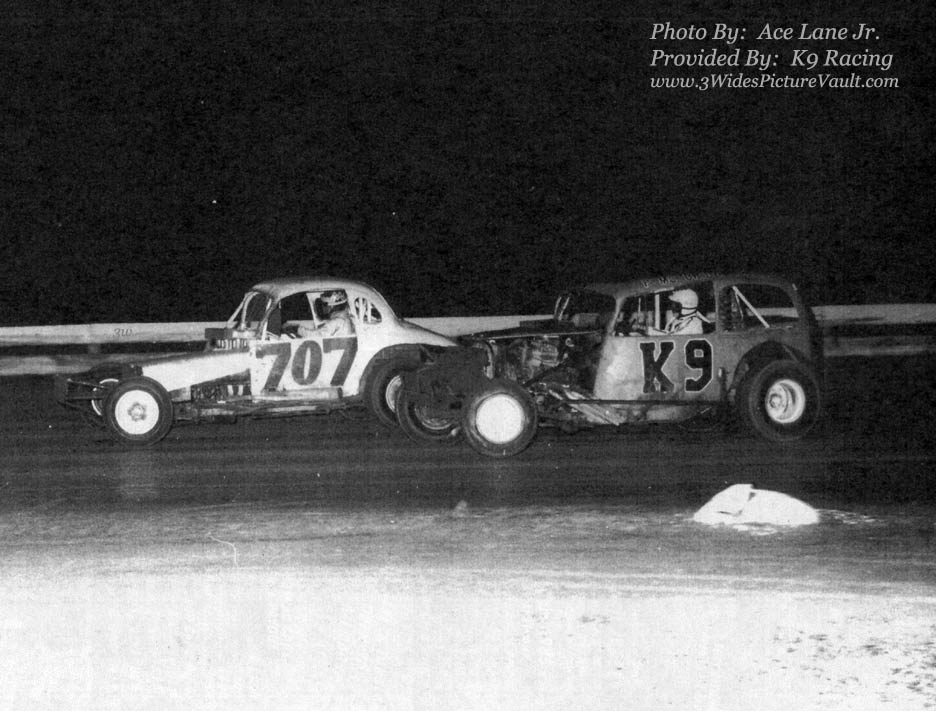 | 03.07.11 | 3Wide | According to Pat McBride that supplied the photo and the info above (not sure if maybe its Pat Jr?), the #K9 was a sportsman with a 301ci motor running against the modifieds. The #K9 finished 2nd to Jan in the 32 car consi. He also added that the #K9 was owned by Bob Simmons of Cranbury, NJ. |