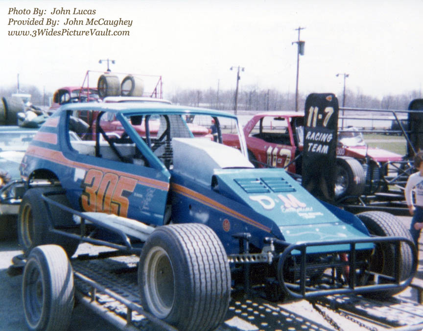 | Comments: | I'm guessing that this shot is from right around 1975 or so at Flemington Speedway with Fred DeGroot and George Ault (#11-7) on the trailer waiting in line at the pit shack sign in the infield. |