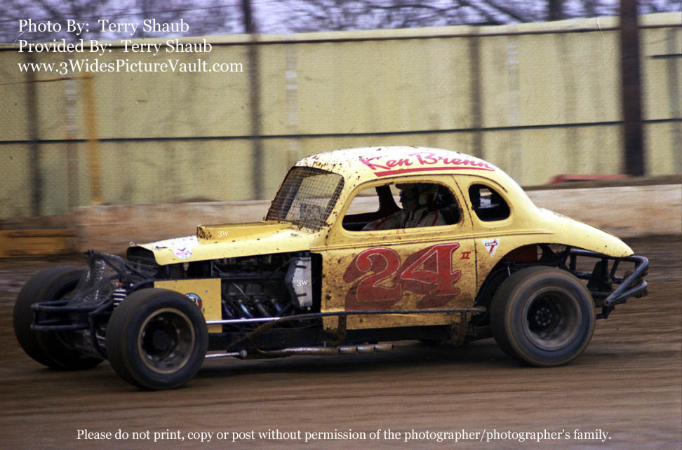 | Comments: | The beginning of a super team... Here's Stan Ploski behind the wheel of the Ken Brenn Sr. owned Olsen Built Coupe. Stan has said on more than one occasion that he really liked this car and that it would go anywhere he put it. I'm pretty sure that the following year, this car would become the first car for then sportsman rookie driver Ken Brenn Jr. Kenny would win the 1972 Rookie Championship at Flemington, and the car would then be sold to Billy Mitchell, who then won the 1973 Rookie Championship at Flemington with the same car, painted orange, with the number's reversed, #42 instead of #24. |