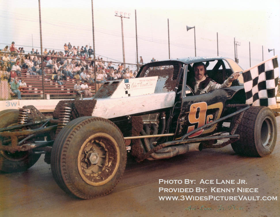 | 03.21.12 | Charlie Miller | WOW!! What a fine photo, the track must have been a little tacky today, look at the amount of mud on this racer. I bet he's got an extra 20-30 lbs on her, and with the windscreen mostly blocked, it's a wonder he could see anything at all. The #9c was definitely a very nice looking racer and evidently ran pretty good too. |