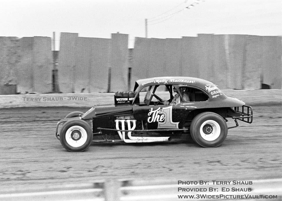 | Comments: | Never saw this car run, but that doesn't stop me from really enjoying this photo. It's what a lot of us liked about "modifieds..." A very visible fuel injected big block stuffed between 2 frame rails... a hand lettered body mounted over top of the cage, with the driver clearly visible behind the wheel. There was a uniqueness to the cars, and an excitement to watching the guys behind the wheel wrestling their homebuilt creations down the straight and through the turns. So much so that even if there was a lull in a particular race, fans like us could find excitement just by taking in the coolness of of the cars....whether running in a pack, or just riding around by themselves... just being cool... |