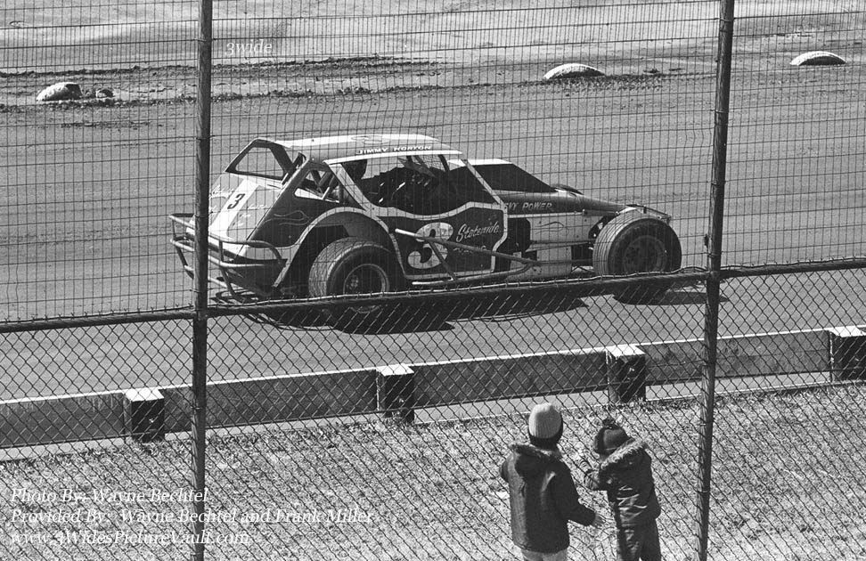 | Comments: | Comment: Cool picture of Jimmy Horton rolling by in the Statewide #3 Weld built car as 2 young fans get a close look. |