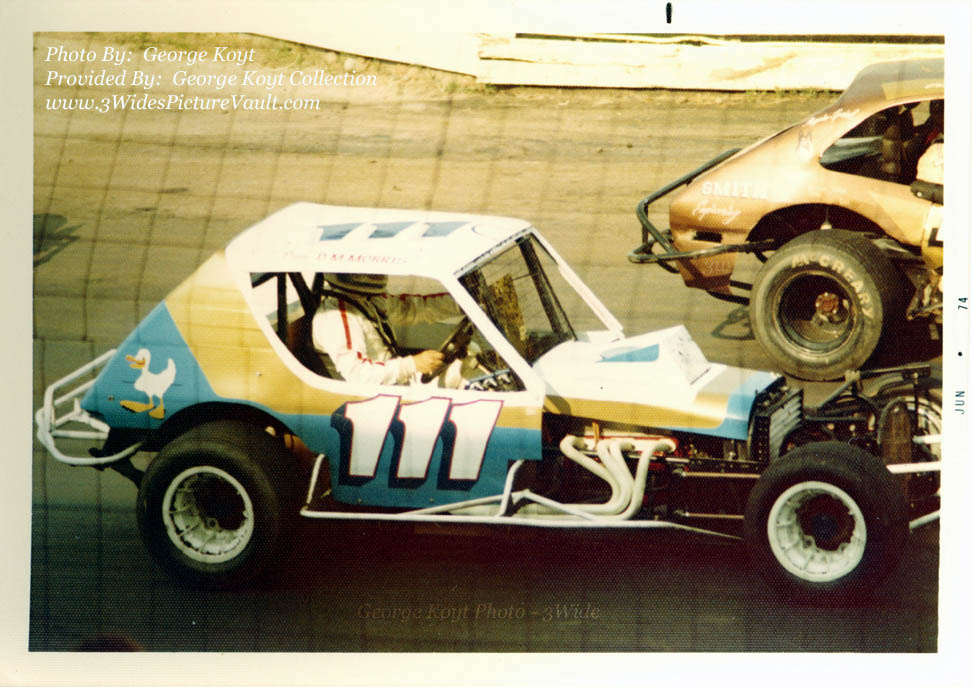 | Comments: | Comment: I'm not sure of the order but I know that Del George, Pete Madsen and Stan Ploski all drove the Morris #111. I see the car has a small block in it here, and I'm pretty sure that's Pete behind the wheel. Pete was another one of those real strong Flemington Sportsman runners from the early 70's that made the move up to modifieds. After running his own #82 coupe and then Pinto bodied racers, Pete ran this the #111 and also a #18 which he ran in the '77 season. |