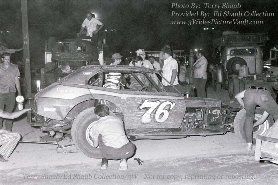 | 07.20.14 | Mark Bullock | This would be 1973 at Reading, notice our spare coupe on the truck in the background. The man to the right rear tire would be Gus Frear, and the gentleman with the hat and glasses standing by the left side of the car would be "Poppa Joe" overseeing the work |