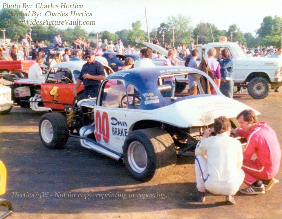 | Comments: | Comment: Comment from Charles Hertica: Here's one of my Instamatic photos from Middletown, Circa 1974. Although not as sharp as a professional would provide, it's not too bad.... Obviously that's Buzzie with his back to us, but I don't know who that other driver is....possibly the driver du jour of what I think is the Charlie Sanders #4 in front of the #00 ?? |