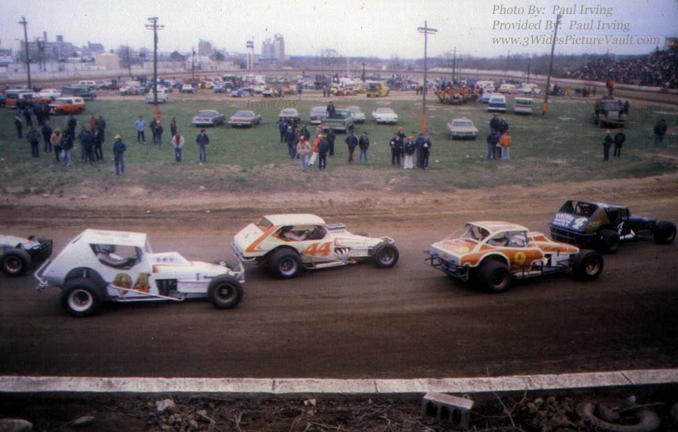 | Comments: | Comment: Photographer Paul Irving shot a lot of pics from the infield at Middletown but he also has some real interesting shots from the spectator side from Nazareth. Here's a great shot from in between turns 3 & 4 showing a variety of body styles and chassis that could be found at your local short track! |