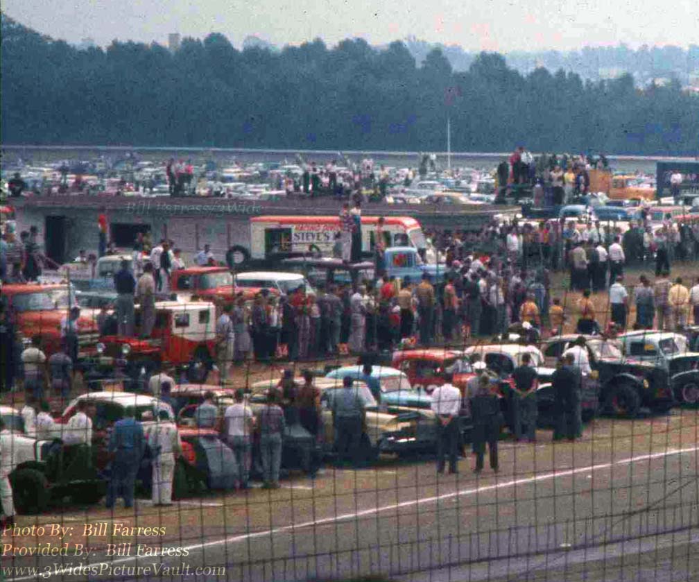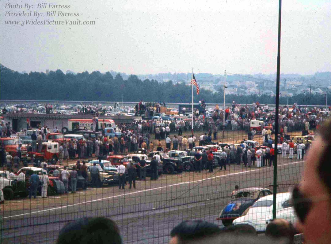 | Comments: | Comment: Drivers and crews stand for the National Anthem at Langhorne Speedway. |