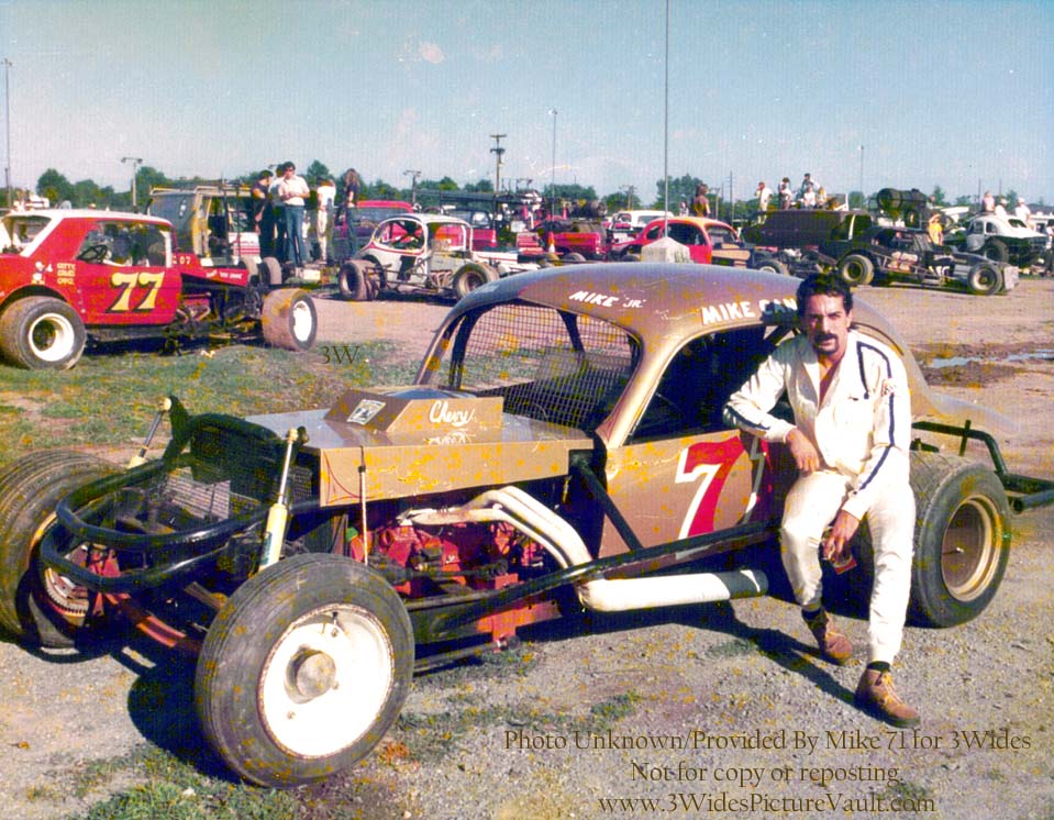 | Comments: | Comment: Dirt and pavement driver Mike Cangro, pictured here in the pits (mid 70's) at Flemington with his #71 coupe. |