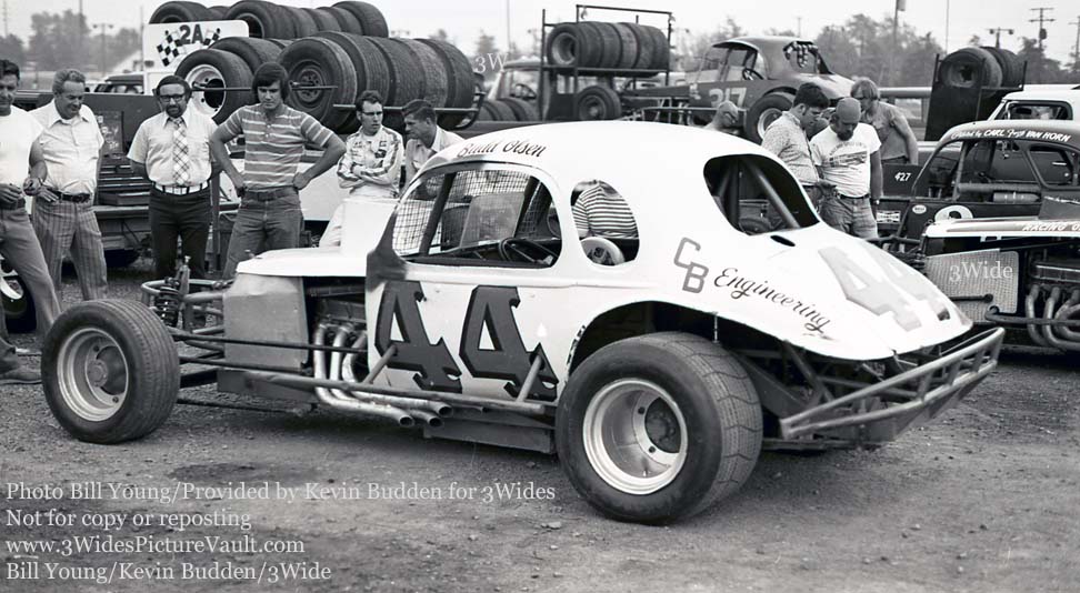 | Comments: | Comment: #44 Coupe driven by Budd Olsen. This car was also driven by Dick Anderson, Bobby Pickell and Howie Cronce. That's Budd almost out of the frame on the left. Buzzie Reutiman (pitted next to the #44 is also in the picture with arms crossed. |