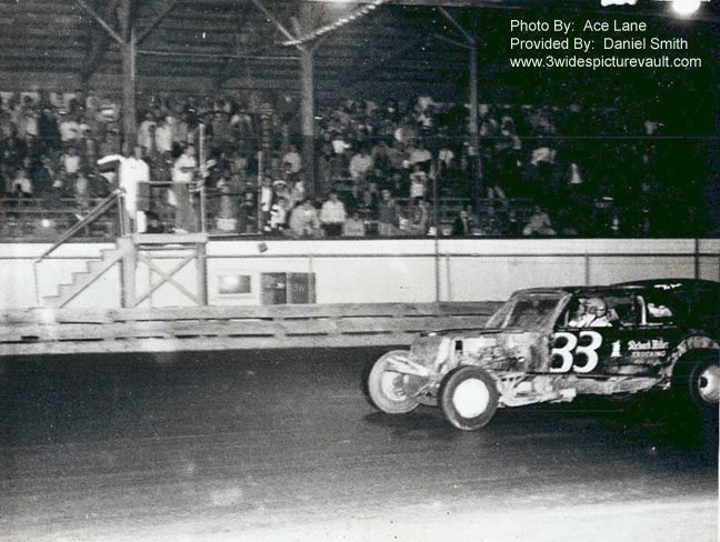 finished second that night to Gary. I was sitting in the first turn. This was one of the better sportsman races ran. Both drivers started around the middle of the pack and worked there way up to the front by the 5 or 6 lap. There were a lot of lead changes in the final 9 laps. When the white flag was out Lee and Gary were running side by side going into turn 2. It stayed that way up to the checkered flag. That race was so close to call that in the end it was Gary that won. I have the photo finish of that race. Both cars were side by side at the finish. Gary's front bumper on his car stuck out farther then my fathers and that's what gave him the win. There were many good races at Flemington , But this is one race I will never forget. THANKS FOR THE MEMORIES !!! |