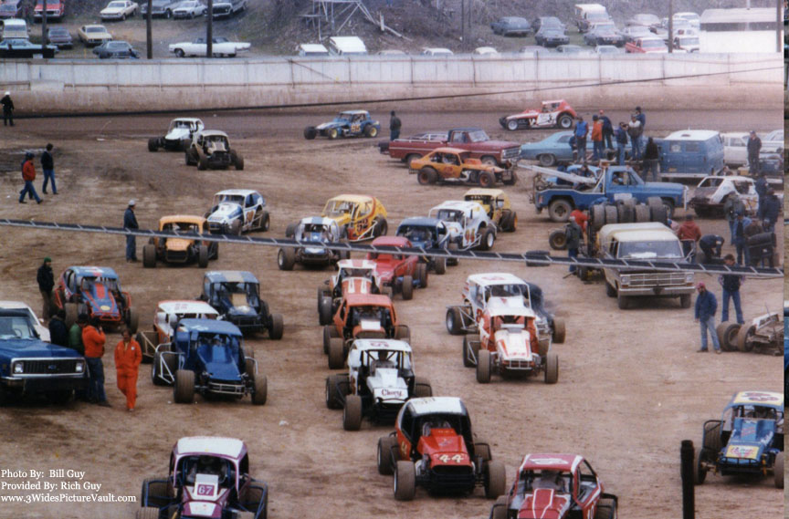 This was most likely open practice day prior to the season. There is a mix of Modifieds and Sportsman all at the same time. |