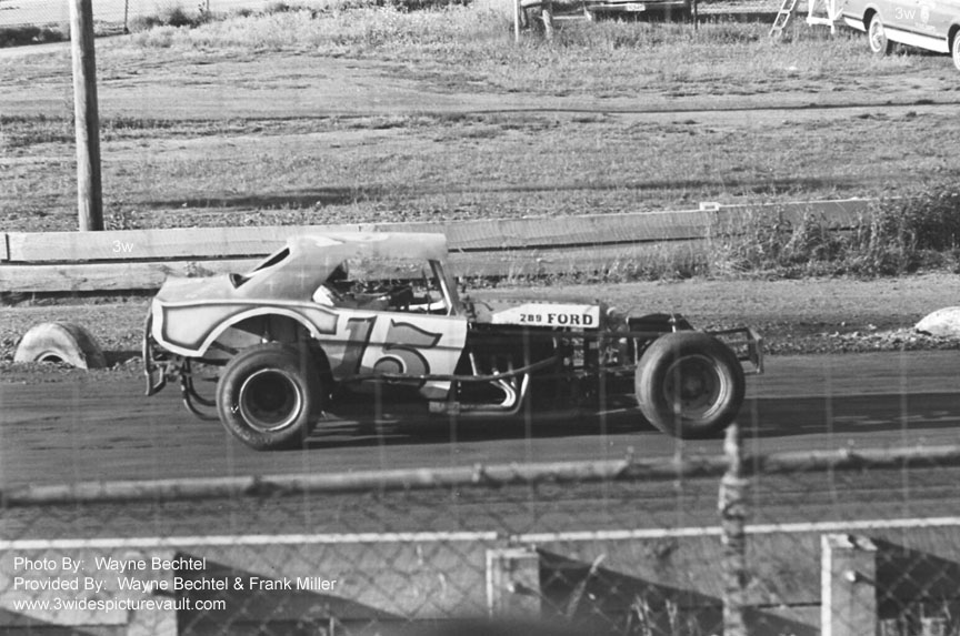 | 08/09/08 | 3Wide | Definitely a sportsman... I think this car was white with blue trim and the coupe that he ran before this might have been white with red trim... but then again, I may have that backwards... but then again, it was 30+ years ago! The more I look at this photo, the more I like how the body sat on this car. It looks like it has Mustang doors, I'm really not sure about the rest of the body... |