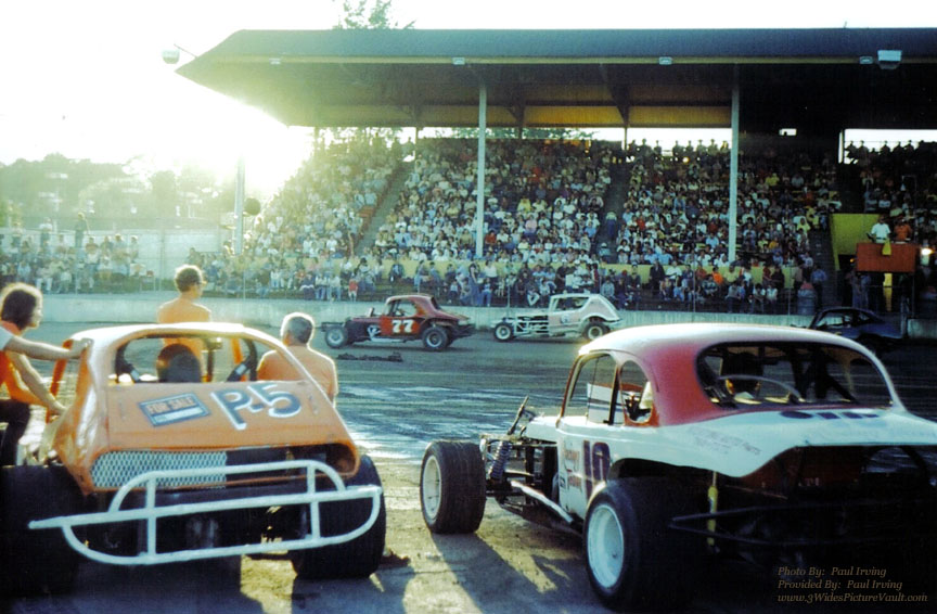 "What a great shot. I remember going to the speedway about 2 in the afternoon and putting pillows to save my seats, then going to watch the cars check in. I can just about pick myself out sitting halfway up the aisle above Mingey's 6. Always sat on the end. Great memories of my early days of going to the races." |