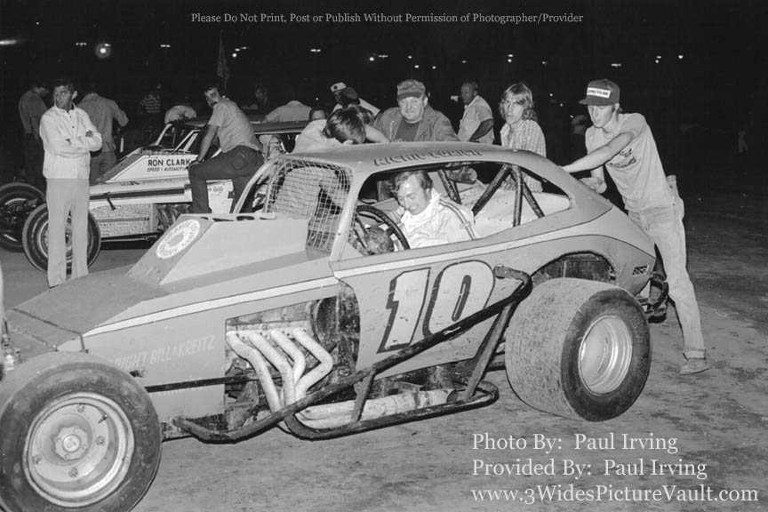 | 03.10.11 | CHIP | I remember 1 Saturday night 1977 and it was with this car, it was a 30laper Richie ,Wayne Reutimann an Gary Balough but on 1 hell of a show, Richie won Wayne was 2nd Gary 3rd. All 3 cars were in the photo at the finish. That's Dave Kelly in the back ground of this picture |
