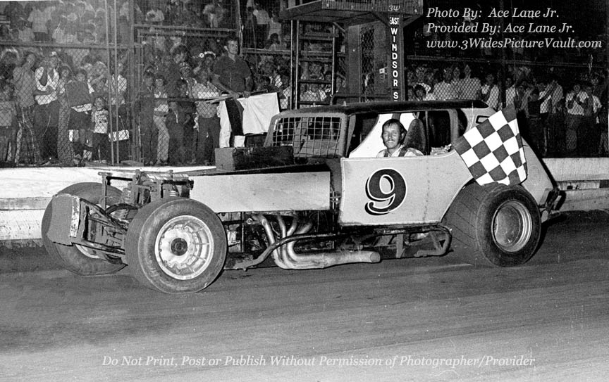that wouldn't work, Gary would find a way by. All of this was at a time when the established "sheriff's" such as Ploski, Beavers, Osmun, etc..., weren't looking for anyone else to come riding into town. Gary's winning in the "pink" car above picked up even more when the car was purchased by Anthony Ferraiuolo and repainted maroon and white, and renumbered to #73. Gary of would go on to win at many other tracks and would also become the talk of Syracuse in years to follow... |