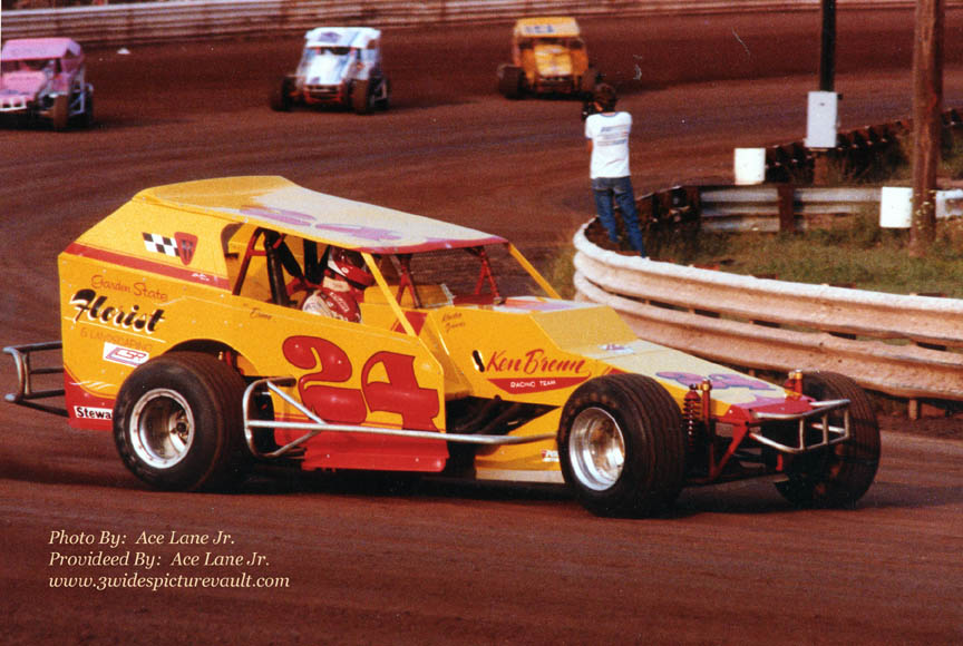 | Comments: | Has their ever been a more "in control" looking driver behind the wheel of a dirt modified? An owner's dream... easy on equipment, able to put the car where it needed to be at all times... and quite often, by the end of the night, the place where he put the car was "Victory Lane!" |