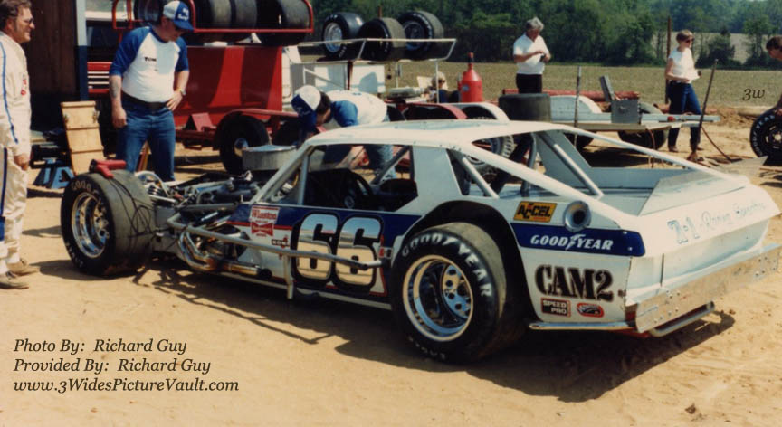 | 11.25.10 | Mike Kent | It's 1982 and asphalt modified racing was alive and well in NJ! This is Tom Commerford wheeling the Don Ling-owned 66 Chrysler-bodied modified. Tom would have 5 wins in that car @ wall stadium to finish the 82' season. I was at Wall (and New Egypt) through several driver changes in the venerable 66, including Don Ling Jr., Brett Bodine, and Geoff Bodine. When I look @ this picture, I can still hear my uncle's S-1 warming up in the garage around noon every Saturday---to this day, I love the smell of CAM-2 in the morning!!! |