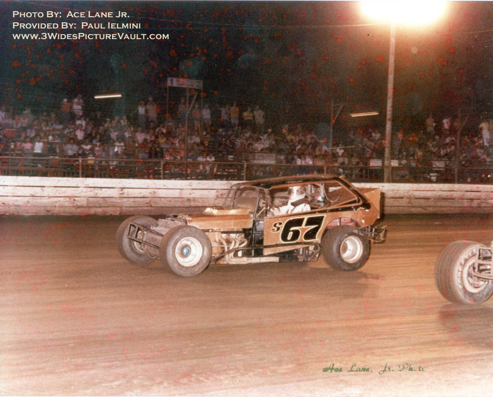 side, right up against the boards - Fun to watch. As you can see, Paul had some special fabrication on the back of the car to make room for "an extra large fuel tank needed for Syracuse.." (wink wink...) Not sure if he ever ran Syracuse, and from what I hear, not sure if he ever had an extra big tank either, but the downforce from the sheet metal probably helped to keep the rear wheels planted. Car was one of the first sportsman to consider not just getting through the air, but using the air as an advantage. |