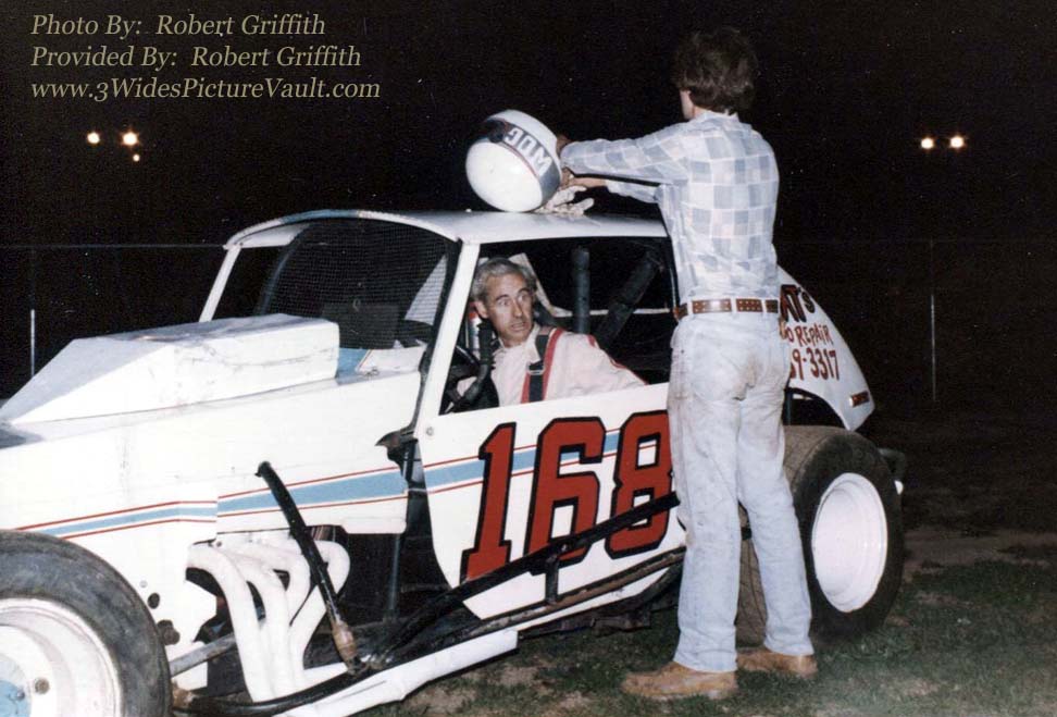 | Comments: | Comment from Robert: I think it was the year end 200 lap race, but it very well could have been a 100 lap race. Pat Wog, Jr. drove the car most of the time, Sr. drove long distance races. With Pat is crew member Angelo Ponzo. I crewed on the #168 for a couple of years. No one could have been nicer that Pat, Sr. |