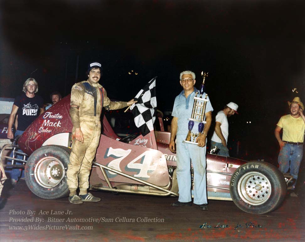 | Comments: | Comment: Larry Kline and crew member Sam Cellura in victory lane at Flemington with the Trenton Mack #74, which was the last Grant King Modified to be built. |