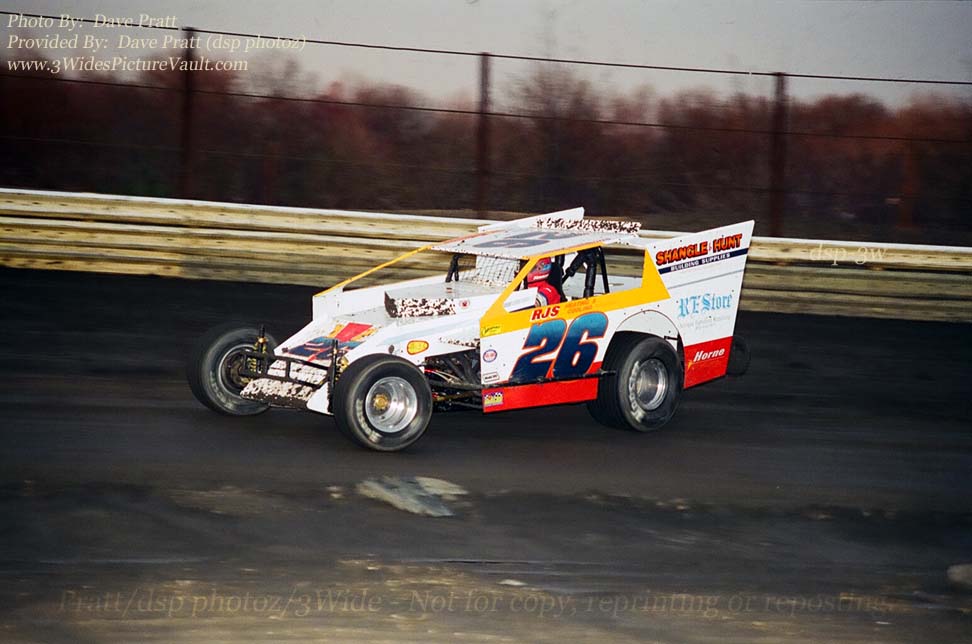 | Comments: | Comment: I'm told that's John Simmons behind the wheel of the #26. John's father was the promoter at New Egypt in the late 90's (?) and was a heck of a good guy... John's son Ryan is now a strong sportsman competitor at the New Egypt Speedway. |