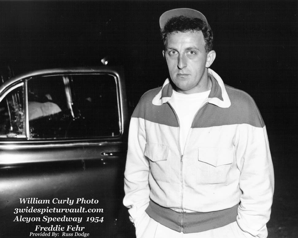 | Comments: | Comment from Russ: A black and white great portrait. Freddie Fehr at Alcyon Speedway in Pitman, NJ in 1954 |