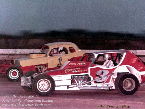 | Comments: | Comment: Not sure of the year, but that's Bruno Cranstoun on the outside of Jimmy Horton at East Windsor. Although it's a profile chassis, we're told that the body on the #1 was from an original Ken Brenn coupe. (Body was narrowed before put on the new frame.) |