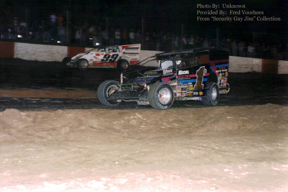 To his outside in the 99 is Roger Phelps (Uncle of DIRT hotshoe Jimmy Phelps). Photographer at Fulton around that time was Don Edds this could be one of his shots |