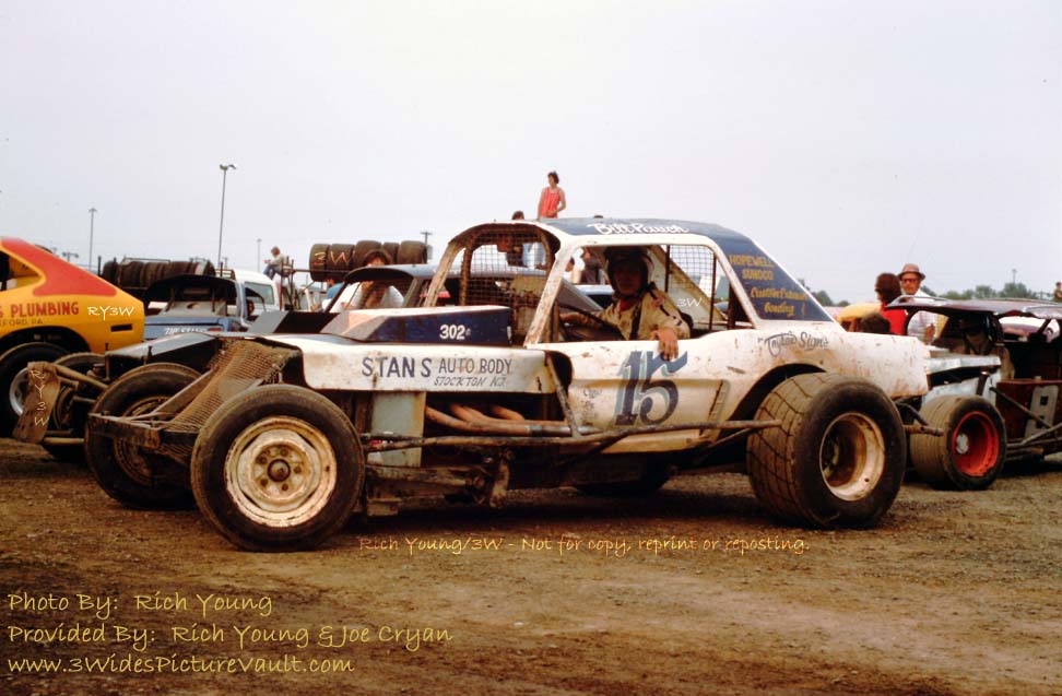NOT. This is the first car that I remember Billy racing, although I have learned that he ran a Falcon bodied racer (also a white #15) a few times before the start of rewriting the record books beginning opening day at Flemington Speedway in April 1975. |