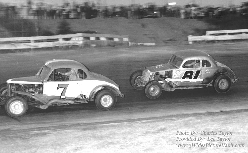 | Comments: | Not sure who is behind the wheel of the # 7 (hopefully you guys can give us an assist on that) and it looks like Don Stives behind the wheel of the #81. Don won quite a few races in this car with a little motor. Don can tell the story better but the way the rules were at the time, they ran the sportsman with the modifieds... with the smaller engine sportsman cars running up front. Well, for a while, nobody could run down the #81... |