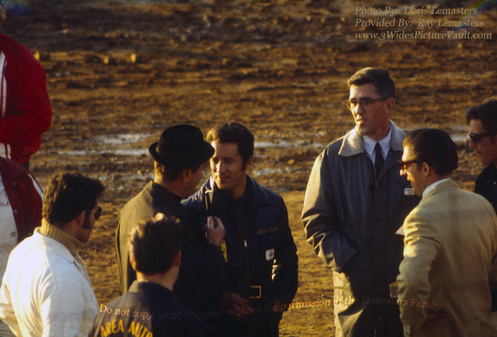 Comments: | Mario Andretti gets interviewed on the frontstretch at Nazareth Speedway. If the date provided with this photo is correct (1970) that would mean that that is Indy 500 Champion Mario Andretti being interviewed! |